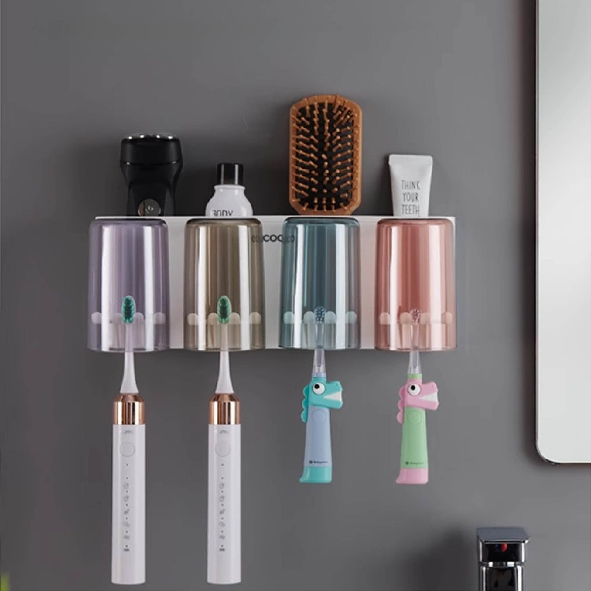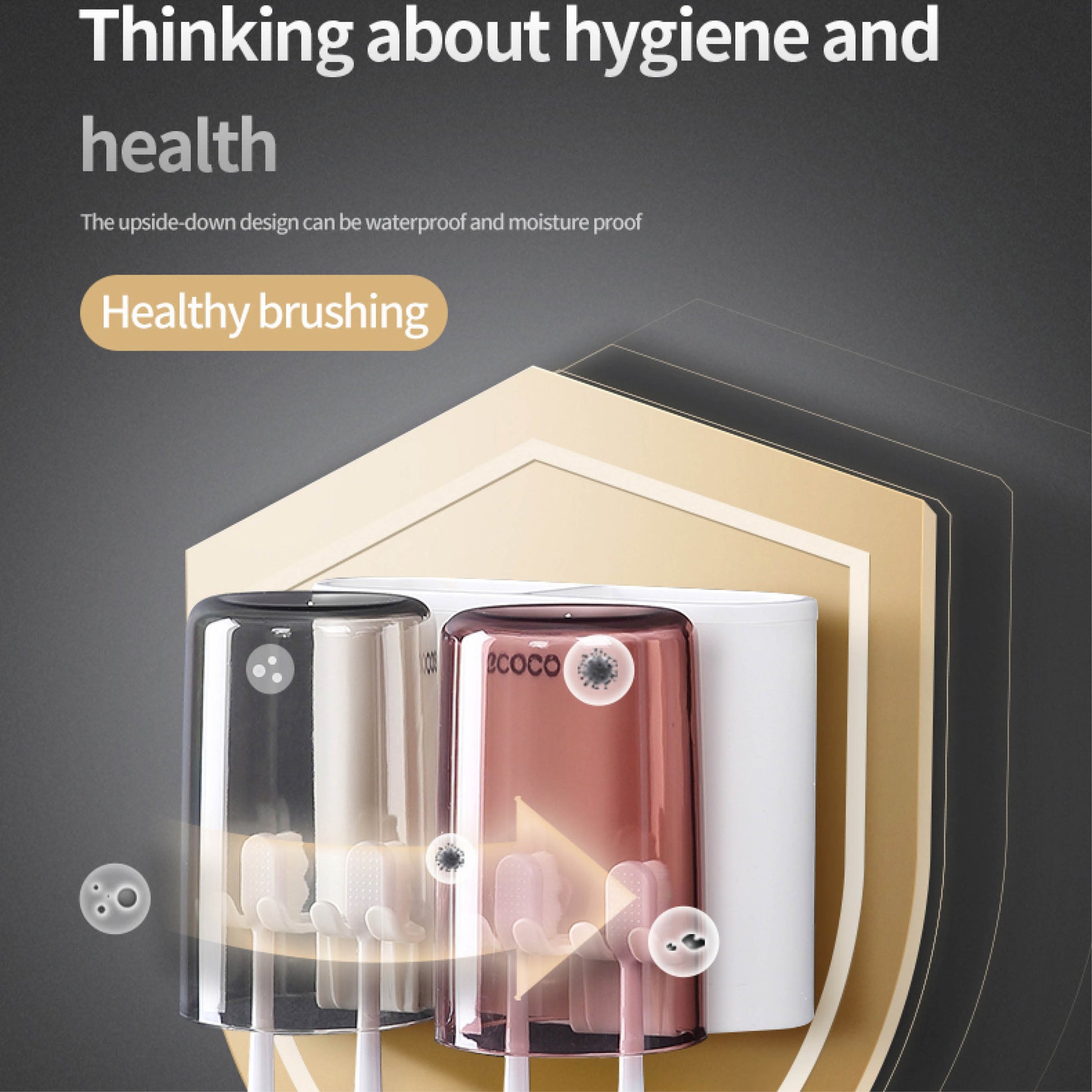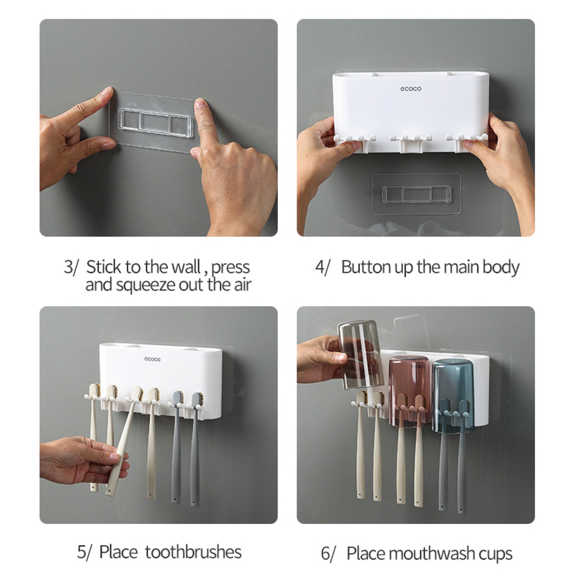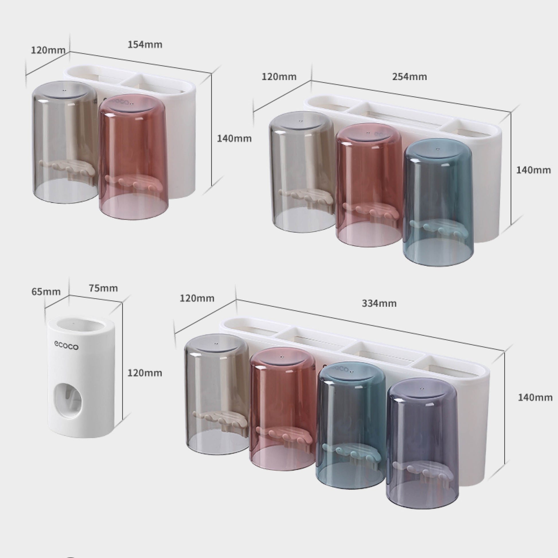 Nástěnný držák se skleničkou na zubní kartáčky (3ks)