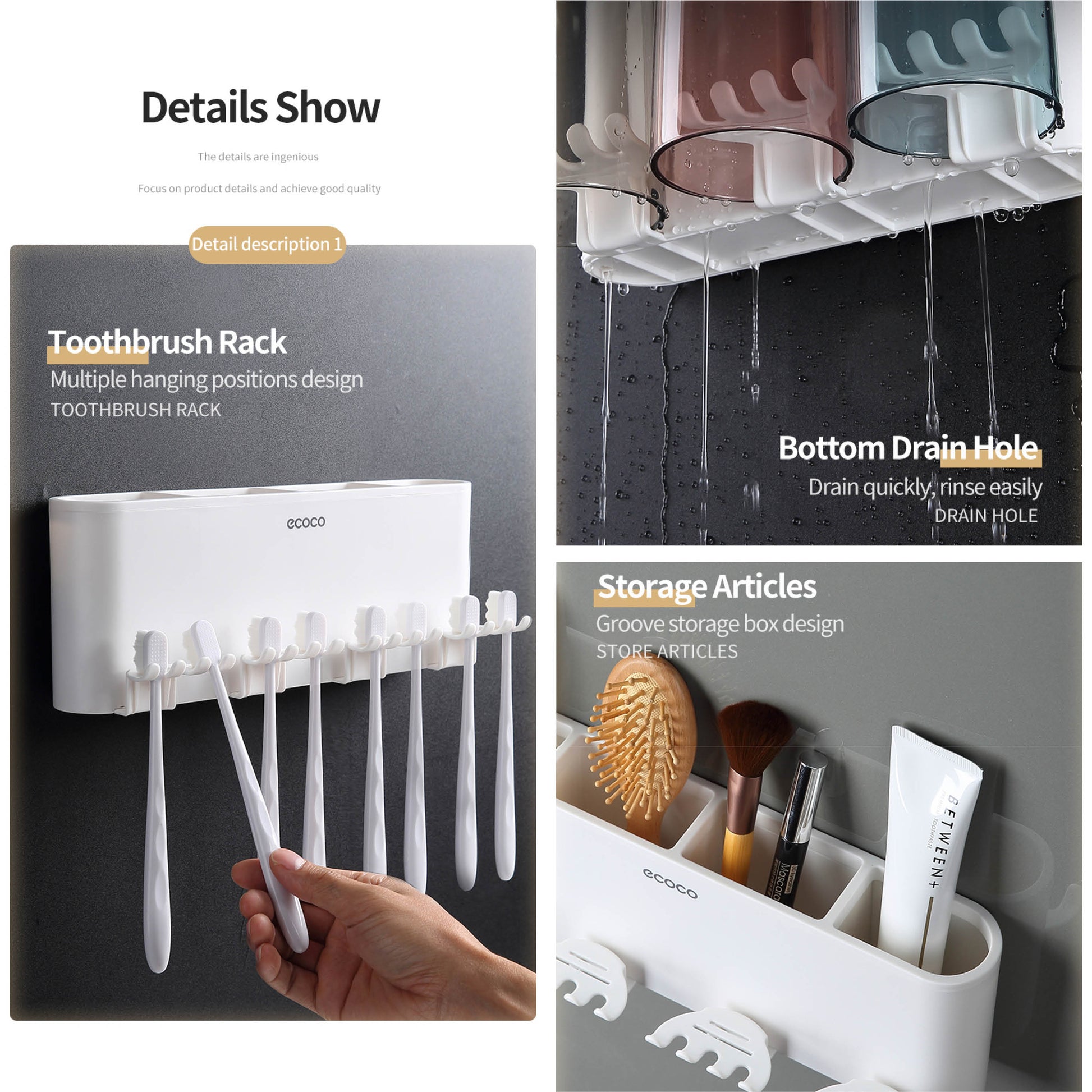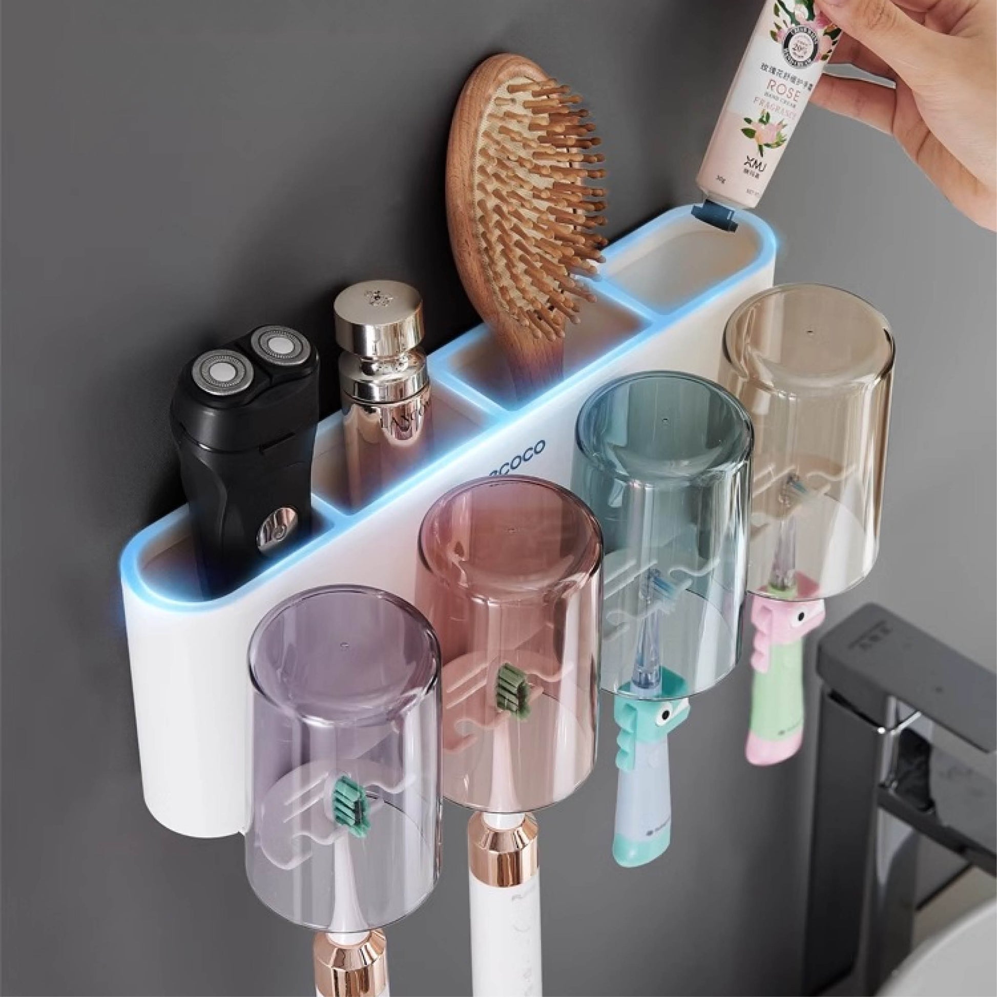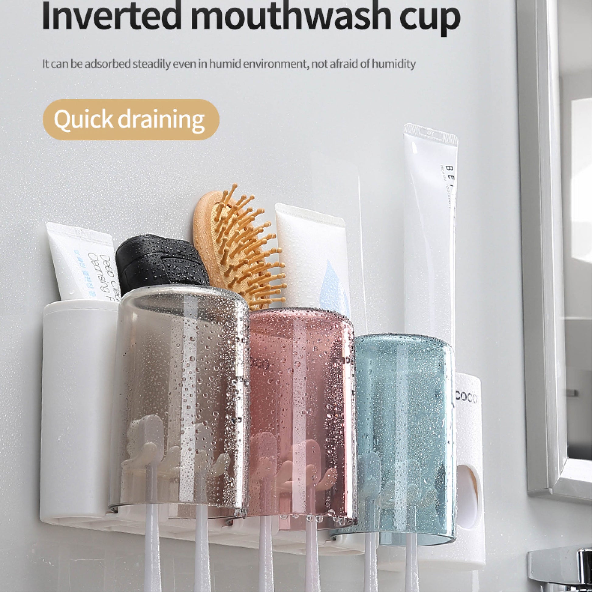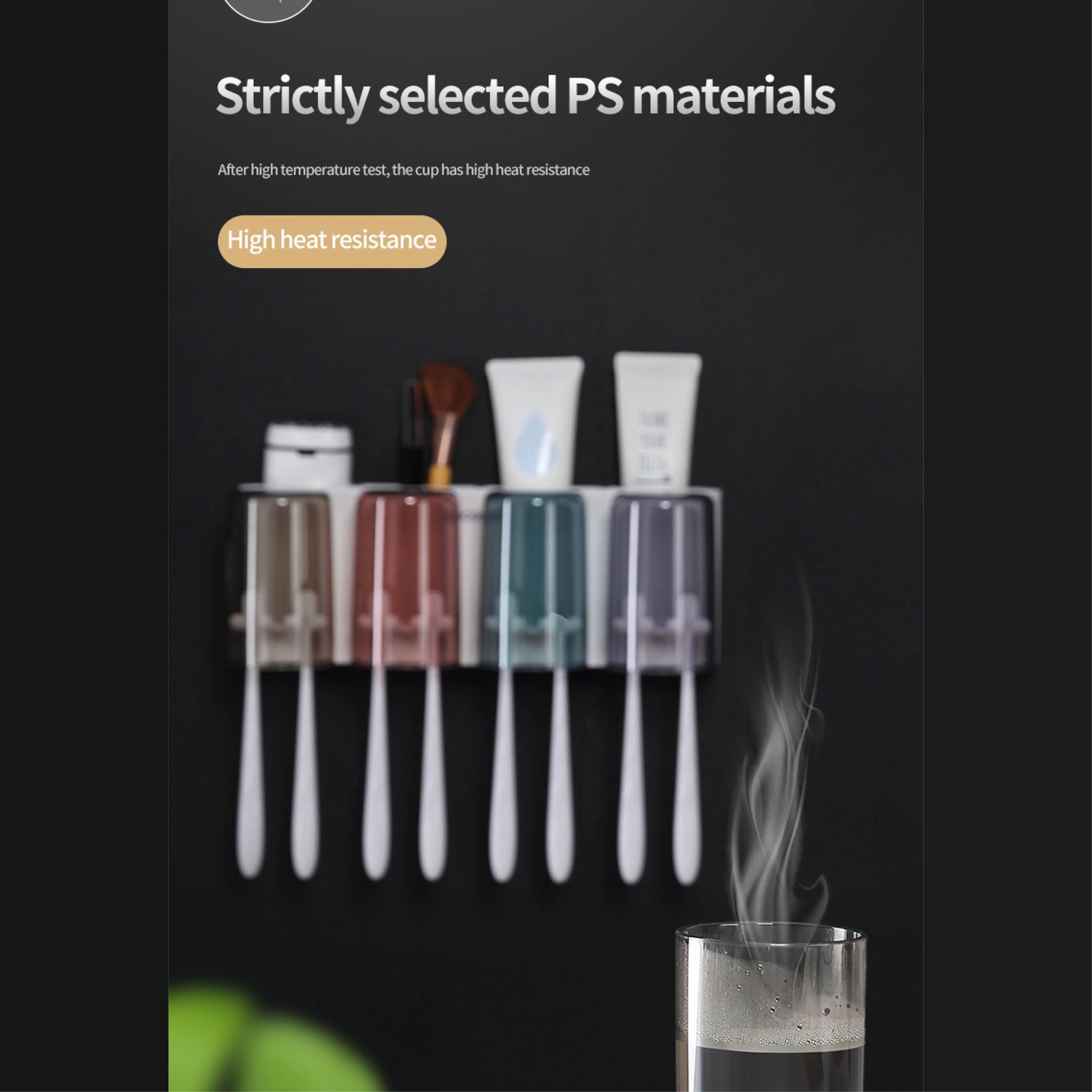 Nástěnný držák se skleničkou na zubní kartáčky (3ks)