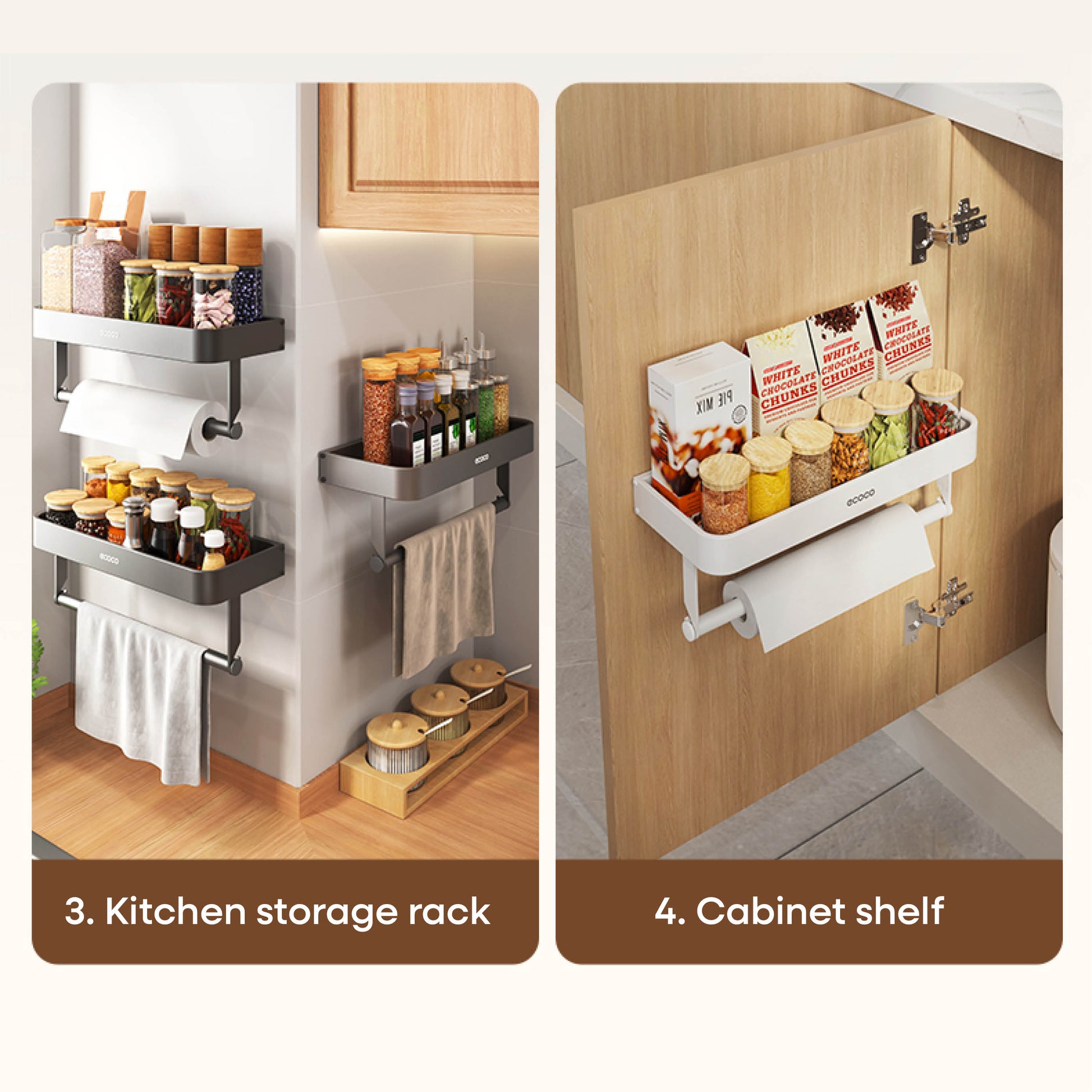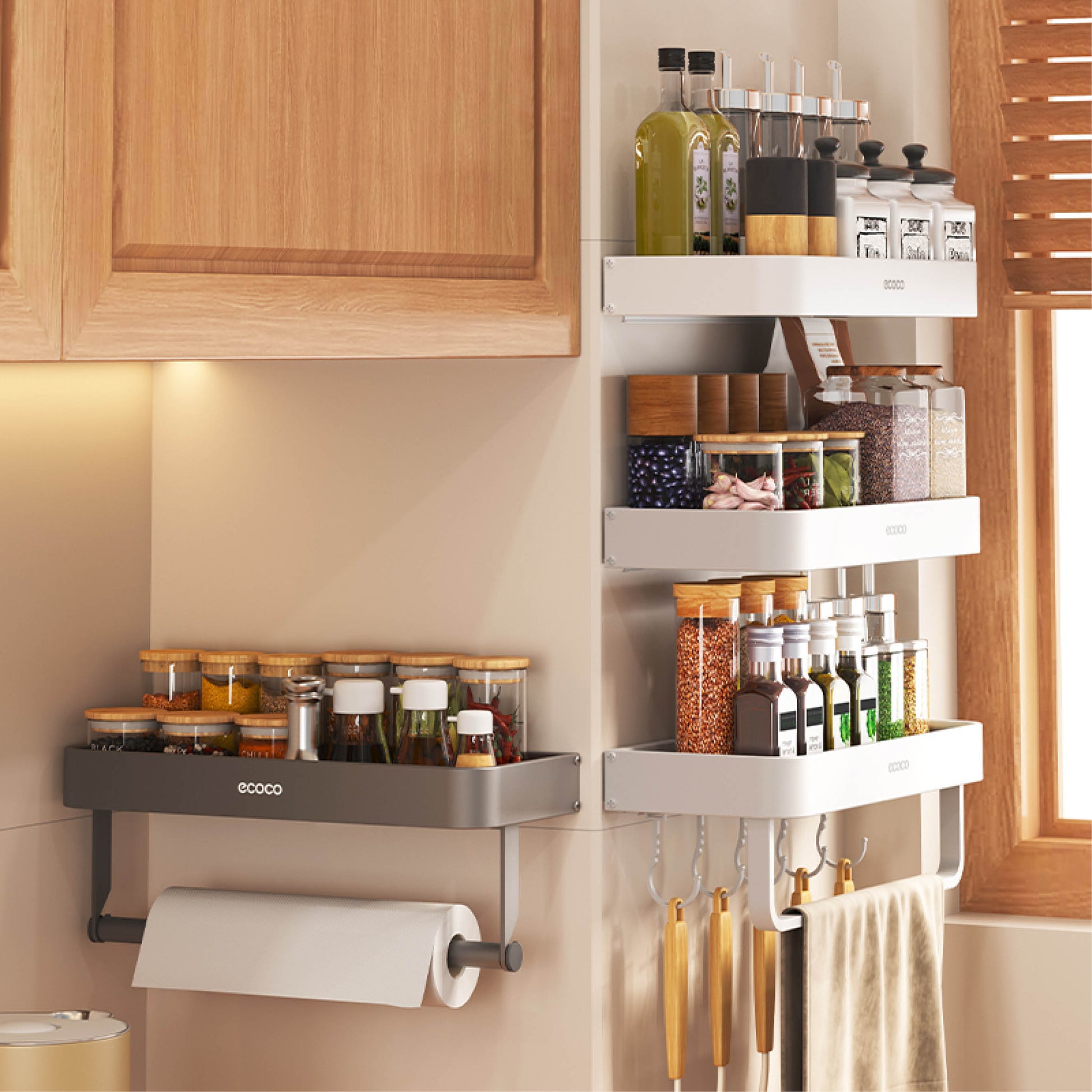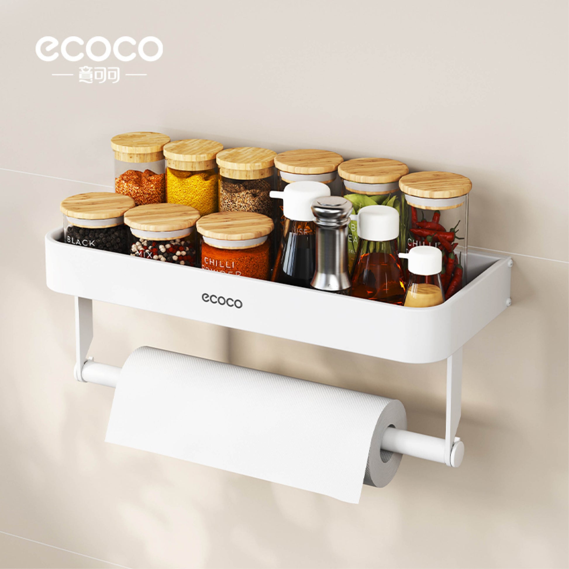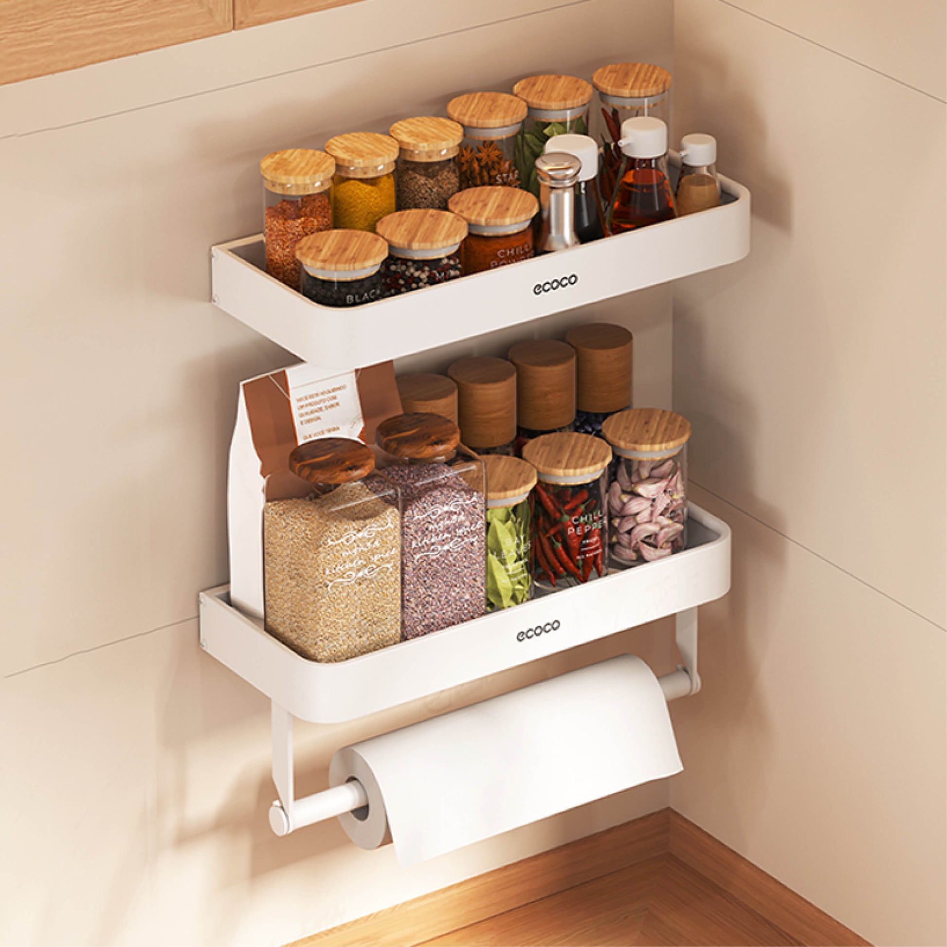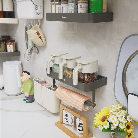 Nástěnný stojan na koření s držákem na papírové utěrky