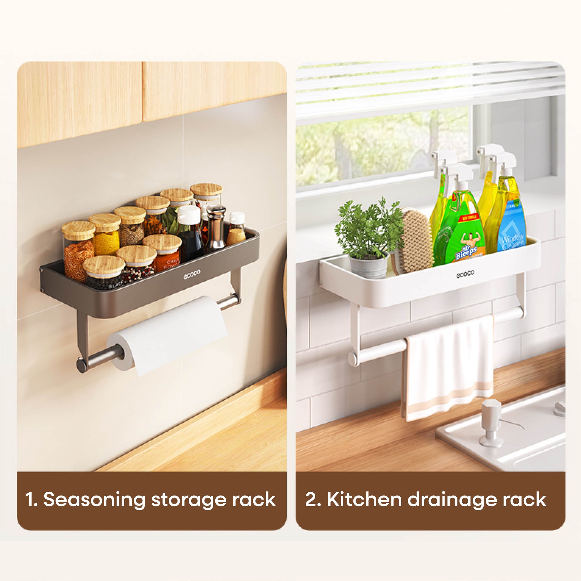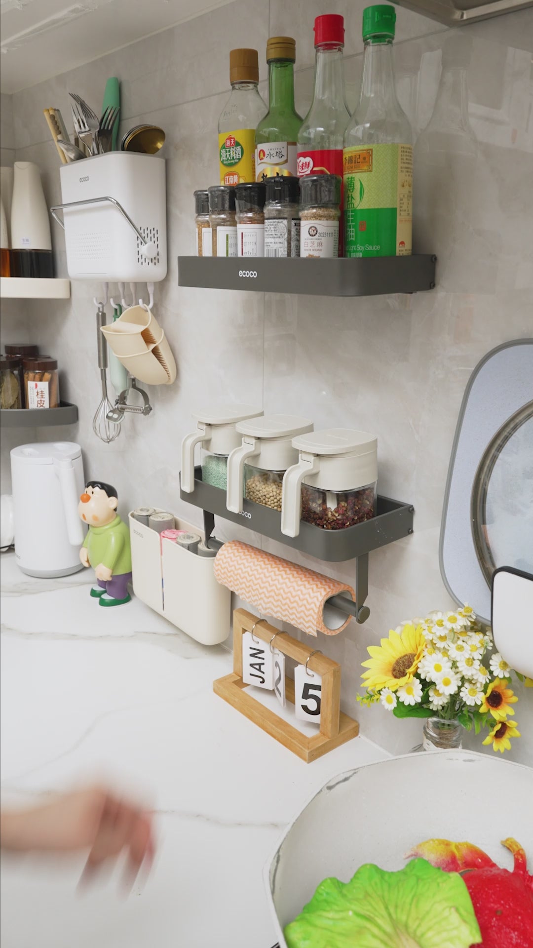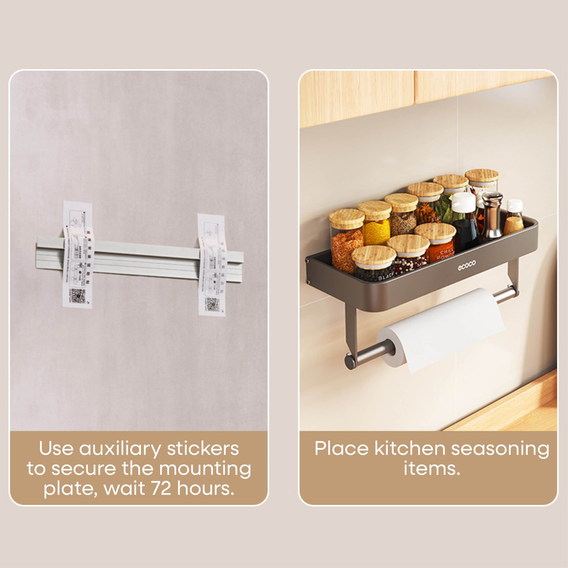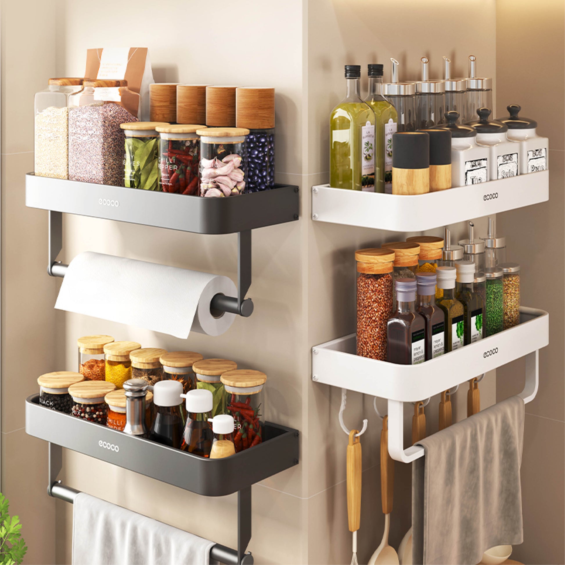 Nástěnný stojan na koření s držákem na papírové utěrky